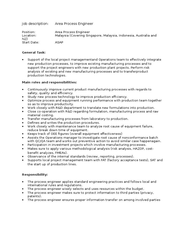 Ability to read and analyze technical drawings. Job search MyJobStreet Company profiles Career advice. Process engineer jobs in Indonesia 1 20 of 154.